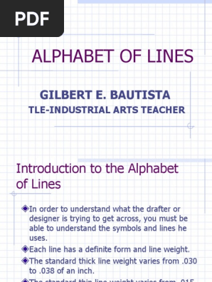 • make a well informed presentation of the . • create a unified point of view. Used to initially lay out a drawing. Technical drawings provide clear and accurate information how an object is to be manufactured. Thin lines are typically drawn with a 0.3 mm or 0.5 mm mechanical pencil. This drafting tool is used when drawing vertical lines. Technical drawing & alphabet of line. A horizontal guide line used to determine the general height of lower case letters. Electric power distribution line construction (nc ii). Start studying tle ( alphabet of lines). Explanation of the importance of alphabet lines • illustrate properly the idea. Find more similar flip pdfs like lm tle 7_8 mechanical drafting. Technical drawing is also called functional drawing because it use to represent the design of objects that needs to be constructed or formed .